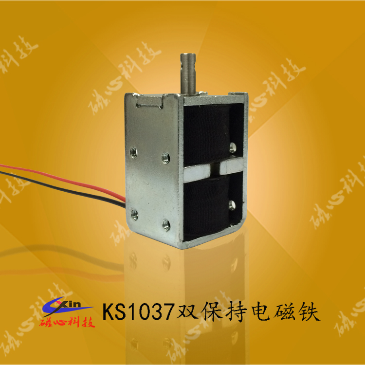 KS1040雙保持電磁鐵屬于微型推拉式電磁鐵,具有雙保持功能,產(chǎn)品可以在沒通電的情況下在永磁鐵的作用下保持在一個位置,保持力的大小可根據(jù)客戶的要求設(shè)定。電磁鐵廠家--磁心