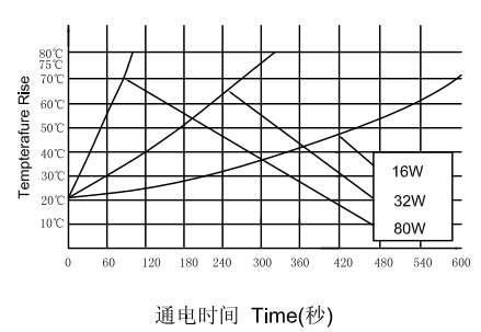 三、U1564推拉電磁鐵通電時(shí)間和溫升對(duì)應(yīng)的曲線圖: