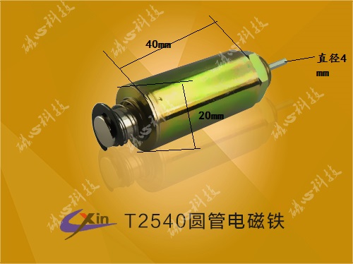 生產的一款推拉式電磁鐵或微型電磁鐵,產品直徑為25mm,高度為40mm,巧妙的結構、精致的做工以及優質的品質被廣泛由于自動化設備產品上。T2540圓管電磁鐵具體介紹如下: