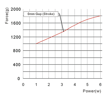 橫向軸代表電磁鐵的功率大小,縱向軸代表電磁鐵的力量大小。額定條件為和被吸物行程為0mm,力量的大小隨著功率的增加而加大。